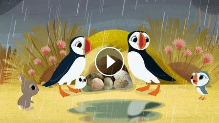 كرتون جزيرة البوفين الموسم 1 الحلقة 2. الصدفة اللامعة / فلين الودودة / سرير من الريش