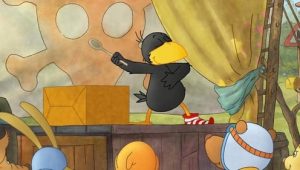 هو غراب يحب السباغيتي شقي جدا، جميع تصرفاته تؤدي دائما إلى كل أنواع من المآزق.