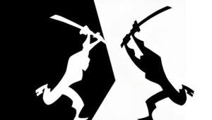 مع سيف والده السحري كاتانا، تحدي أكو إلى مبارزة ليهزم الشرير, ومع ذلك قبل أن يتمكن جاك من ضربة الضربة القاتلة قام أكو بإنشاء بوابة الزمن ويرسل خصمه في المستقبل البعيد، وتوقع أنه سيكون قادرا على حشد قوة كافية للتعامل مع السامرائي في وقت لاحق.