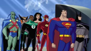 فريق العدالة – المسلسل : في مسلسل الرسوم المتحركة هذا، يحارب كل من “سوبرمان” و”باتمان” و”وندر وومان” و”فلاش” و”غرين لانترن” و”مارشن مانهانتر” و”هوك جيرل” الجريمة بصفتهم “فريق العدالة”.
