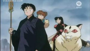 إينوياشا : تدور أحداث المسلسل حول إينوياشا، نصف شيطان والذي يبحث عن الجوهرة المقدسة أو (الشيكو نو تاما) التي تزيد من قوة الوحوش عند امتلاكها. وكاغومي طالبة في المدرسة ذات الخمسة عشر عاما التي تعيش مع عائلتها في معبد بجواره شجرة عمرها ألف سنة في مدينة طوكيو. يعيش كل من انوياشا وكاغومي في عصرين مختلفين، فكاغومي تعيش في العصر الحديث بتطوراته اما انوياشا فيعيش في عصر الحروب في اليابان القديمة.